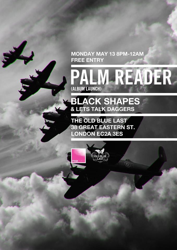 “Hi, Just a reminder that tonight is the Palm Reader album launch show at The Old Blue Last in London. It’s free entry and a great line-up Monday 13th May, The Old Blue Last, London, Doors from 8pm, Free Entry, Support from: Black Shapes / Let’s Talk Daggers / The Orchard