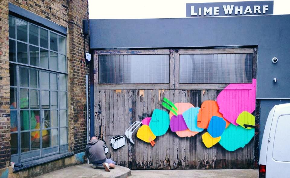 Toasters down Vyner Street, now that can’t be a bad thing can it? Toaster crew, flowers from 616, the East London street is flowing rather nicely. This piece of work appeared yesterday on the old doors of Lime Wharf…