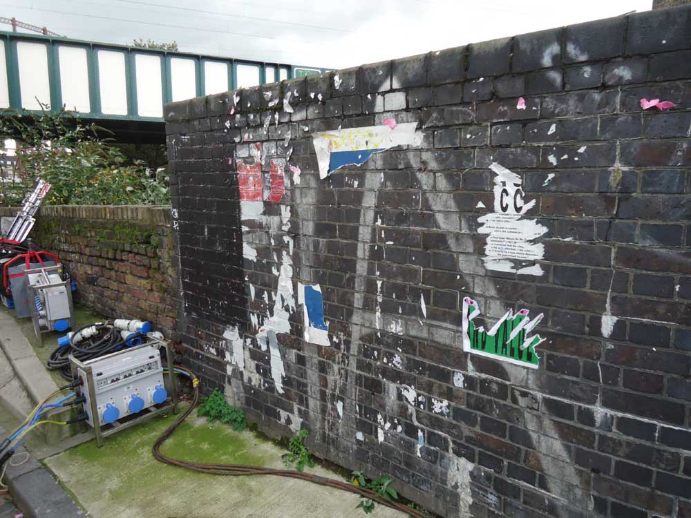 Alo and Alex Arnell‘s butterflies, at the top of Vyner Street on Cambridge Heath Road, got “buffed” today though, by another film crew by the looks of it… Shame really, I was enjoying the way that was evolving