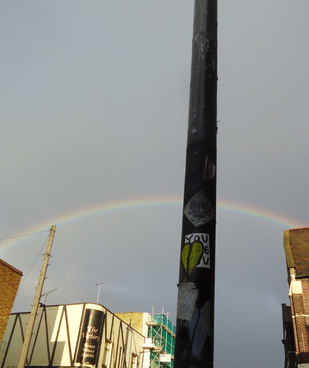 And talking of Mr Dio, as we were just then up there, here’s today’s fine Ronnie (as we like to call then) rising over Vyner Street an hour or so ago…