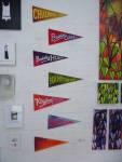 First Thursday then. This month at Cultivate, we have the seven in-house artists – the exploring beautiful of EMMA HARVEY, the angles and structures of GARETH MORGAN, the surrealist flavours of painter JESSICA BALLANTYNE, the curious world of JULIA MADDISON and her sculpture, her prints and her mind playing, the anonymous creativity of MOB, the rhyming slang, stitchery and sporting juxtaposition of QUIET BRITISH ACCENT and the whatever I’m doing today. At the moment, our two guest walls are occupied by latex artist MICHELLE MILDENHALL and the textures and marks of ASHLEY FITZGERALD