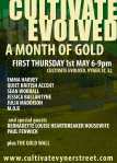 Last night’s First Thursday late evening opening at Cultivate Evolved (Vyner Street, Bethnal Green, East London), in photos. (May 1st 2014) A wall of Gold, the regular in-house artists – EMMA HARVEY, QUIET BRITISH ACCENT, JESSICA BALLANTYNE, JULIA MADDISON, M.O.B and SEAN WORRALL alongside guest artists BERNADETTE LOUISE – Heartbreaker Housewife and refined contemporary painter…