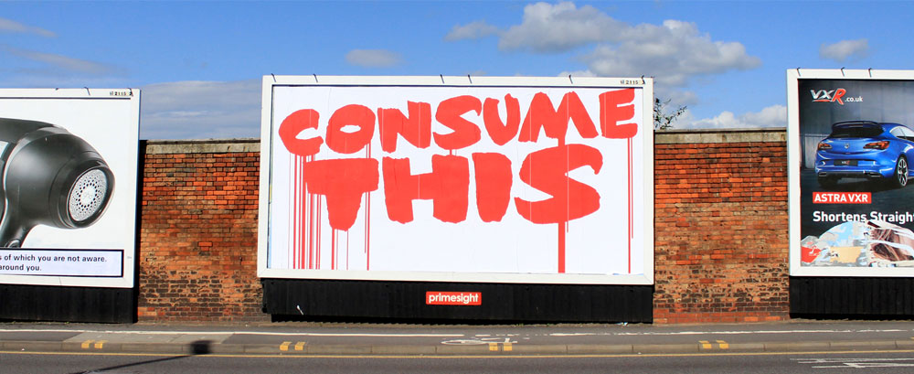 This just in via Upper Space – For those more interested in art, social and political theory, we will be releasing a selection of essays online as part of our #Politika programme. The first instalment is an essay from Bill Posters, founder of Brandalism, entitled ‘Advertising Shits In Your Head’: