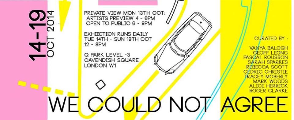We Could Not Agree takes place in the rather large multi storey Q-Park car park beneath Cavendish Square in London W1. Featuring one piece each from over one hundred artists, the show will come together on level three of the circular car park venue for one week starting on Monday October 13th