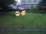 Found myself taking the short walk in the rain from Cavendish Square (London W1) and a second visit to the circular stimulation of the We Could Not Agree show in that car park, a short wak down Harley Street to Regents Park and the Frieze Sculpture park (via the chaos of the limousines and the expensive wallet-carrying clothes being ushered from taxis to take part in the art buying bun-fight and the main Frieze arena). The Sculpture park is free, out in the open, there, breathing amongst the falling leaves of now suddenly very Autumnal beauty of Regents Park. Worth the walk in the rain just for the glorious strangeness of Japanese art superstar Yayoi Kusama (not sure about that Martin Creed video screen) and the scale of that KAWS piece (especially if you’re not expecting it to emerge from the trees, suddenly there occupying your eye-line behind Franz West’s attention-taking Sitwurzt. The scale of the Brookyn artist Kaws’ piece just grabs your breath for a second if you’re not expecting it (sorry if that’s just been ruined that by telling of it here)