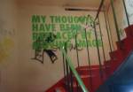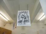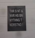 An artist? A musician? A commentator? Pop art? Black Metal? Black rain? He’s almost as intriguingly vague as the Vague-like publications fly-posted on the walls of the second (unrelated) exhibition in the back room and stairwell of Space, a second exhibition that you have to walk through Blunt’s sparse (and very polished) room to get to.