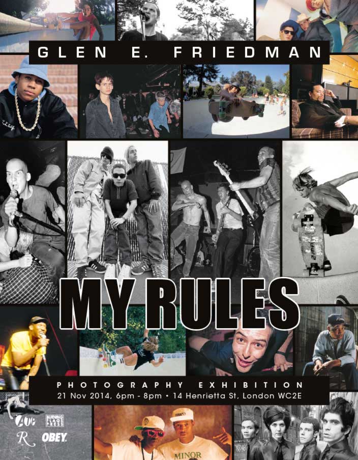 Friedman’s My Rules serves as a testament of integrity for the three powerhouse countercultures of skateboarding, punk, and hip-hop.The energy and rebellion shine through – the accompanying book by Rizzoli features over 300 images; it is Friedman’s 7th published monograph.