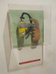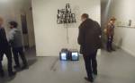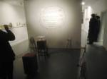 an angry mob broke in and destroyed the machine… the name of an art show that opened last Friday night up at the top end of Hackney, East London, just beyond the Narrow Way heading towards Clapton at the rather hidden Angus-Hughes Gallery…“New and refigured work by Simon Lewandowski” in the bight white space. This really is a beautiful space to explore art, a refined space, big windows, good light, formal yet inviting…. Once again, you wouldn’t really know the gallery was there, looks like a big townhouse unless you know, do like this space, the lack of a sign or any attempt to communicate withe passing people is infuriating, but that seems to be the way with every London gallery big of small . There’s a healthy enough crowd here for the opening of this rather intriguing show though, people in the know and what-have-you, and if you do knock on the big black door it is opened with a welcome and a smile as the strange circle of coloued light-bulbs great you….