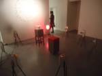 This palindrome is an artistic reflection on our contemporary life with its many simultaneously controlled processes and repetitive actions. “The central device (literally and figuratively comprising the functioning core) is a kinetic sculpture in the form of a self-reversing gearbox mechanism which will trigger and power various (forward and reverse) looping devices.” The drive shaft powers a series of machines (a turntable, a slide projector, moving lamp, etc.) – and then switches in reverse, forming a mechanical palindrome which in turn creates a poetics of dichotomy: on and off, forward and reverse, loud and quiet, dark and light.