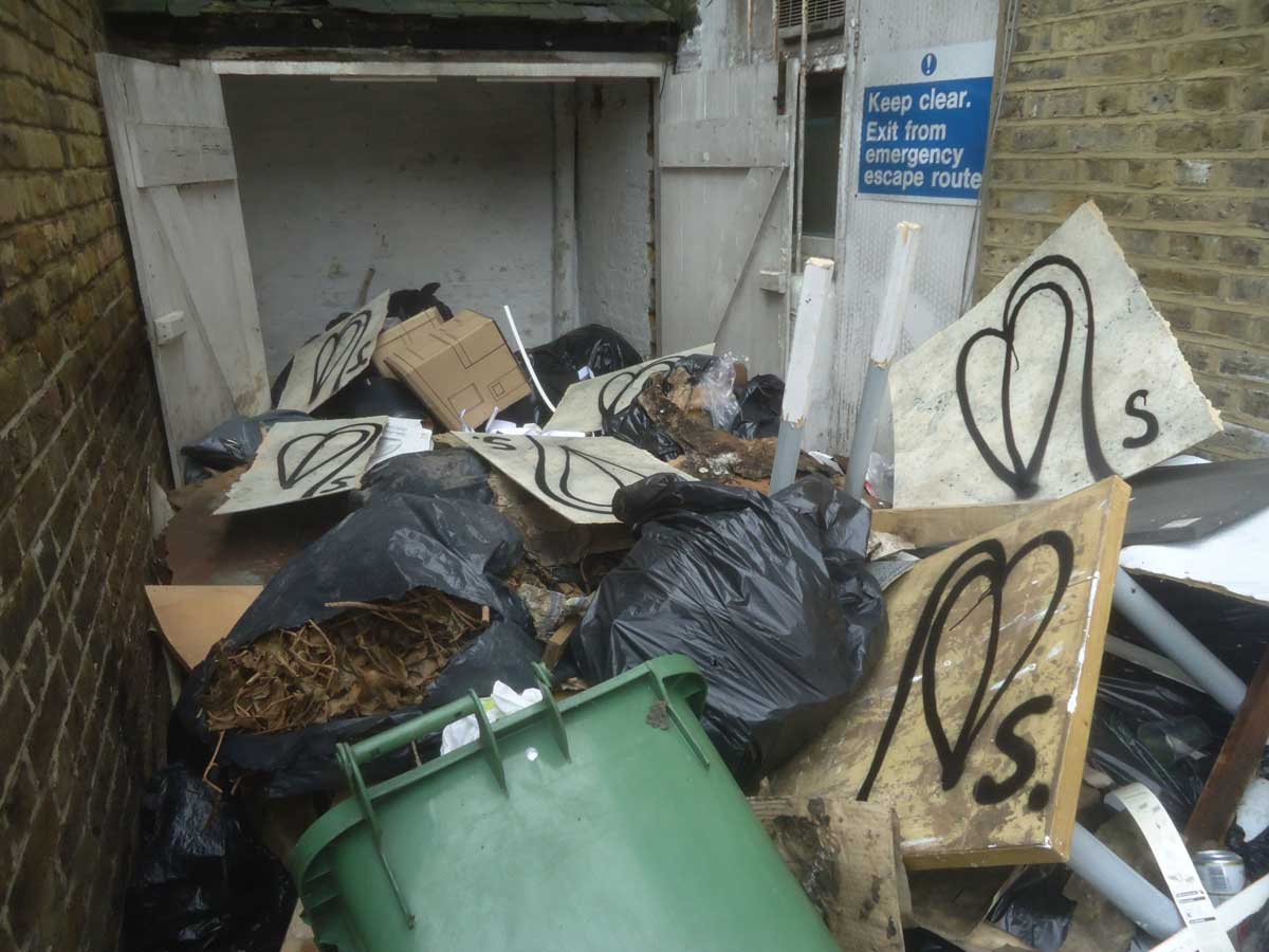 There’s delicate pieces of art hidden in corners amongst the dead mice and the Coltsfoot fighting through the cracks, the growth alongside the projections on the broken plaster, creativity in the rubbish. Bits of abandoned wood and rubble painted on, oil cans, never to be used again doors, all there just off the Broadway for people out shopping on the high street to wander in to and investigate should they wish. Sure, there could have been a little more signage, a little more interaction, then again maybe not, no one had granted any permission for any of this to happen, don’t want the final day to end too soon do we? And one again it does have to end, another space gone then, anther set of people wanting to do a little more than just consume thrown out so a little bit more money can be made by another already fat cat somewhere.
