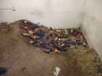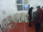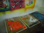 Nineteen or so rooms, some of them put almost beyond use by the developers already, some of them begging to be painted on, drawn in. Some rooms dark, lights ripped out, demanding film on the walls, some alive with the smell of freshly dug earth, with strange piles of boots and shoes, with bold installations, people creating things, positive statements, activity, spontaneous creativity and for one last day, a building alive and with a defiant heart. Don’t know how many artists turned up, the invites went out around ten days before the show, an almost word of mouth event once more.