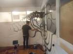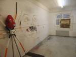 One last fling on Tooting Broadway then, no lambs quietly lying down here, imperial aerosols fired up, carpets crawling and a whole mix of installation, painting, photography, sculpture, performance, print, live action, mixed media, spray pain, cheap wine, cheaper beer and more. Samuel Brzeski’s own room of very personal obliteration is a stand out, doesn’t seem that much at first glance, not until you start to look closer and read between the lines and the paint marks that partly obscure the letters and such hanging on the pegs, the very personal private words there for all to see. Julia Maddison’s latest pieces are delivered in her usual delightfully eloquent way, the empty frame comments of Tom Estes have a very dark almost hidden back room (beyond a room) illuminated rather dramatically. Once again to pick out individual artists seems almost wrong and the thing to do here is to explore and discover, to look, to really look, to poke at things, there’s something different in each room, in the corridors, the cracks in the fabric, not everything is brilliant of course, it never can be in a show as quickly thrown together as this one (and one or two of the artists do have a habit of maybe showing the same piece one too many times). More than enough art in the rabbit warren of rooms worthy of attention though, and yes, when it comes together like this, there’s more than enough to excite, to stimulate, to delight in, to want to explore some more. And right now there are rooms like these and events like this happening almost every week – artist-led, artists getting on and doing it rather than just waiting for it to happen. Right now to be an artist in London is, despite the closing of the spaces and the pricing out of everybody, right now to be an artist in London is exciting. Not sure how many of us will still be here by this time next year, not sure if this city is for the likes of us anymore, but for now, while we can hang on, to be an artist in London is exciting.