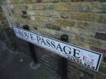 What’s all the marker pen graffiti about, why are people apparently coming from all over London with their pens and their bits of song lyrics and demands for a new Libertines album? What’s with the stickers from football teams that usually don’t mean a thing around here? Charlton Goons, Brentford Casuals? Every time we walk along it the alley has changed again, cut through again yesterday, and there’s more lyrics, more messages for the band, bits of real primitive stencil work that would be laughed down by any serious street art follower, but this is different, I’m no Libertines fan but this alley is intriguing, I like it here… .