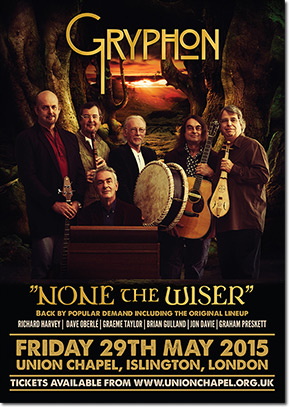 Gryphon are on tour, this is a very very good thing, Gryphon are gloriously beautiful, they’re like Bagpuss or strawberry jam on toast, they’re like every good thing from back there when all was good, pipe organs and tank engines and crumhorn-wielding and jousting and as cool as f. And tomorrow is the final night of their rather unexpected current tour – It has been a long time coming and so it is with enormous pleasure that we announce the Gryphon “None the Wiser” tour. – Gryphon bring their unique blend of English prog, refined folk and mediaeval warmth to London’s Union Chappel