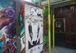 On with the exploring at the dropping (or the carefully hanging) and the dodging around the street art tours and the enjoying of the letter curves of Seeds and the stickers of ThisOne and the windows of Skeleton Cardboard and Saturday morning then, the streets are alive, the galleries, on the whole aren’t (SW).