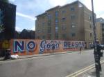 Late Saturday morning, well almost afternoon, so, let’s just head out and see what we can find, East London? Heart of art land isn’t it? We should be able to just go out without a real big plan and encounter some art and a gallery or two that right? Skip past Vyner Street, sadly it just isn’t worth the walk down there now, all building sites and lime-poison and sadly a street that really is a for the history books now – well besides the big Wilkinson place marooned down the at end (bet they’re missing everyone now, what an unfriendly lot they were). No sign of life at Cell Projects (on Cambridge Heath Road) either, is that place ever open other than for their rather formal private views? Their latest press release claims they have a show in, strange place, almost as if being open to yet actual general pubic is some kind of inconvenience (let’s not start on about hidden galleries and no signs again…). Pass the latest bit of officially sanctioned bit of street art from Toasters/My Dog Sighs on a wall controlled by some street art agency or other, I don’t know, shouldn’t it be a little more spontaneous? Street art surely shoudn’t be controlled by a man with a clipboard and a mobile phone (saw him directing things the other day, “hey you should send in your CV and we’ll arrange a wall for you”, nah thanks, never liked clipboards and officialdom, surely street art isn’t about permission and business men controlling walls and saying who can an can’t)