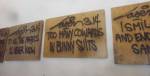 – “The show will be a collection of works from local and international street artists who create hidden, alternative and thought provoking pieces in the urban environment, which are usually installed without the consent of the building owner. All artists have been hand-picked for their incredible talent, unusual approach or willingness to work outside of the ever more mainstream street art world. The gallery will be transformed into an urban playground by the artists to create an exhibition space which reflects their outdoor environment” And well, it didn’t quite live up to the billing, one or two interesting bits, not all so called street art translates to a gallery walls (most of it really shouldn’t, the street is the natural space) and it all feels a little polite and regimented and not really thought out and kind of messy and small framed pieces of primitive art rather than the promised urban playground. One or two interesting pieces here and over there and what’s that? I don’t know? Really like the informal nature of Red Gallery but the flyers were the best bit of the show…