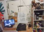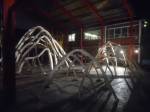 There’s something rather enjoyable about poking around artist’s studios, getting to look under the hood, spy on what they have hidden in the corner, sure they tend to tidy up their spaces for these official openings, a neat line of half squeezed paint tubes next to the wine and the crisps, but you can get to find out a little more, you get to see them in their own environment, their books, their tapes, you can get them talk a little more than they do when you encounter them in the nervousness of a formal gallery… Every studio complex has a slightly different feel, a slightly different mix of oil paint and print fumes, a different coming together of artists. Space studios (Mare Street, Hackney, East London) opened their back doors last night and let us in to explore the three floors of studios that on most days you really wouldn’t know were there.