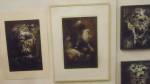 Another rabbit warren of old industrial white wall rooms alive with colour, with paint scars, with chat, with debate, with the sound of Brass Calls and Theremin-like saws played with bows, with letter press and precise oil abstraction, with tales of artist life around Shoreditch before the “YBA whippersnappers” moved in to East London. The beauty of brutalism screen-printed on aluminum from Simon Phipps (complimenting passing trains), print Le Gun, Ben Cove’s beautiful line, block, shape and subtle hint of texture, his rediscovering of paint (“I was becoming too much of a technician putting together my three dimensional ideas, I needed to reconnect”). Cullin Bantock is a proper old school painter (and a delight to talk to), simplicity that (as someone else pointed out), really isn’t that simple, an “experience beyond that of the paint itself”. Adam Dix and his spiritual pixels, modern technology laced with Wicker Man ritual, his “historical optimism”. Another door and another room alive with paint, with talk, with artist notes and bits of sketch books pinned on cork boards. Delores De Sade’s gorgeously detailed black and white etchings and fragments of landscapes and detailed studies of textures of wooden stairs in a room so alive that we could have just stayed in there for the evening, French & Mottershead with their intriguing Brass Calls (more on that later), Robert Mason’s atmospheric suggestions of bones and paint that hints of statues and…