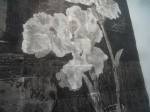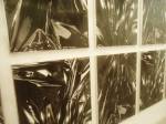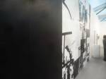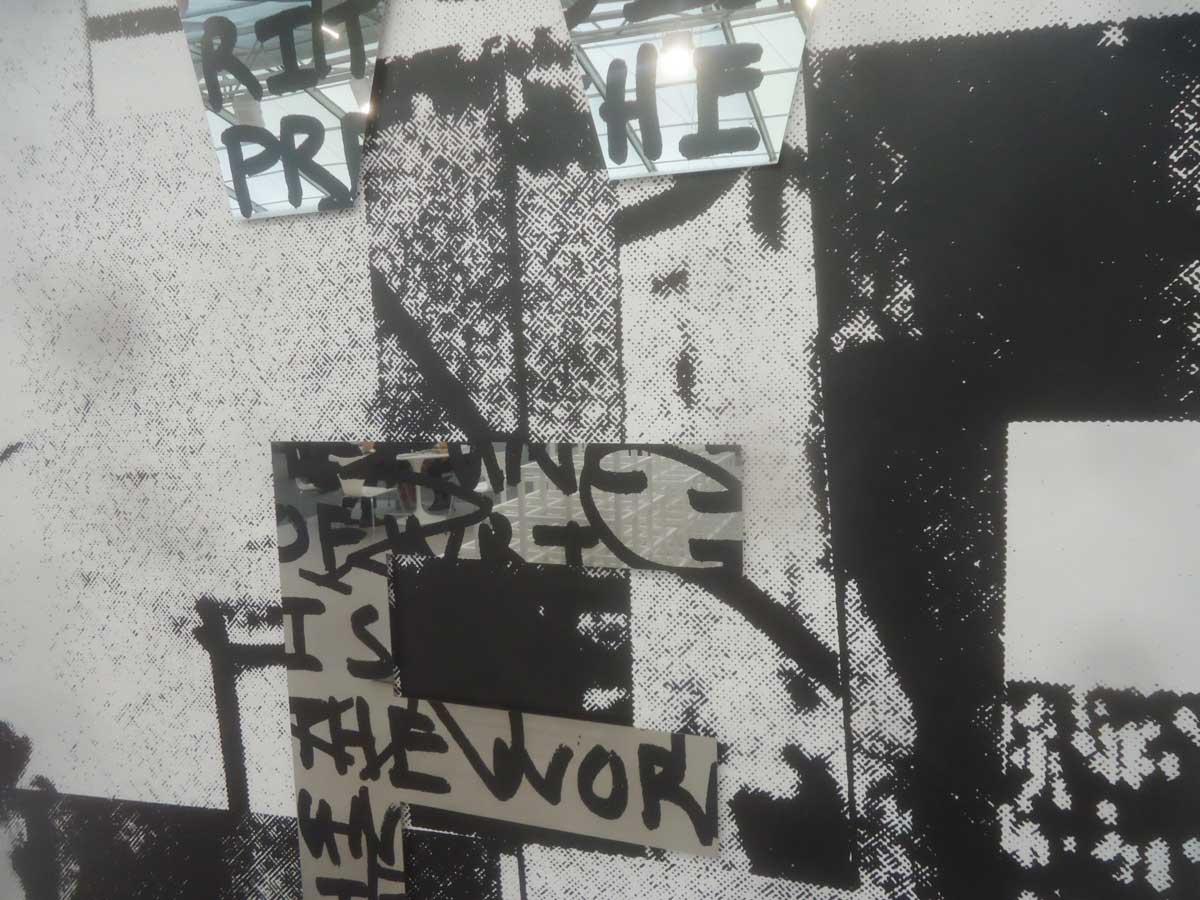 The Robert Rauschenberg doesn’t really stand out like you’d expect it to, a polite piece, something from 1984. Most of the work in here appears to be new, created in the last couple of years. The giant piece of black and white, what shall we call it? A painting? An installation? The imposing piece of wall installation next to the Rauschenberg, that big piece extending right along the wall of the gallery cubical, the work of Adam Pendleton, presented by the same gallery, Pace Gallery (of London, LA and Beijing), and next to the Rauschenberg, now that does have some energy, now that does stand out and impress..