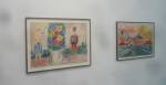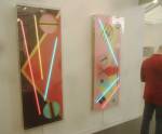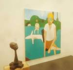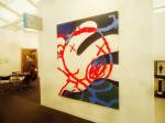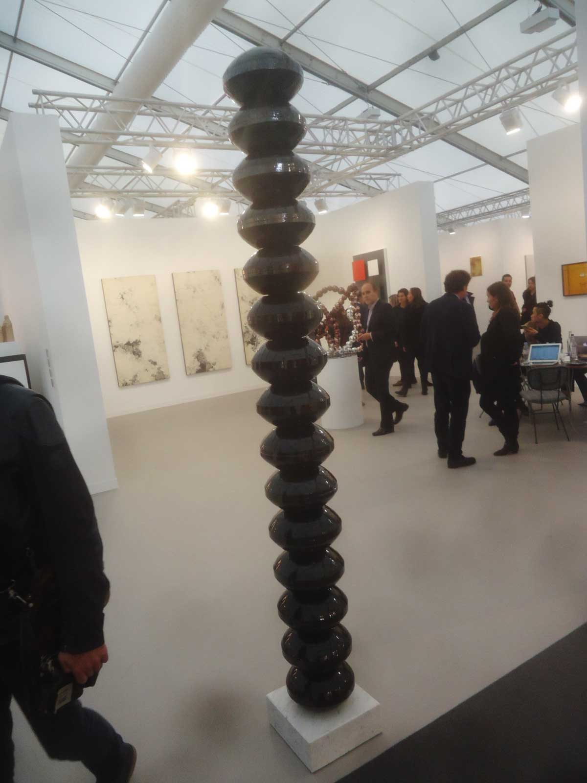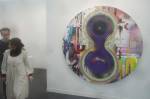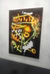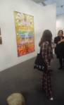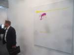 Where to start? That one there? Oh no, that one – bit of a sweet shop, colours battling for attention. Very nice in here, nice and polite, and so much to see, “do you need any help sir?” An almost overwhelming amount of art, painting to the fore, large paintings, lots of big colourful paintings, very colourful in here, politely colourful, paintings dominating, I like that, painting has been taking a bit of a back seat in recent times. Conversation all around, accents, languages, German, French, Spanish, broken English, “oh she’s a very important exciting new artist, one of the most important, we’re excite to have her signed to the gallery, her prices can only go up, a good investment”, “this is a new piece, do you know him, he’s new, we’ll be showing his work in the Milan next month, you’ll have to come”. Who are all these people? What do they do? Who are they? Where do they come from? Never mind the people, what about the art? Here to explore the art, leave the people, plenty of space, explore the art….