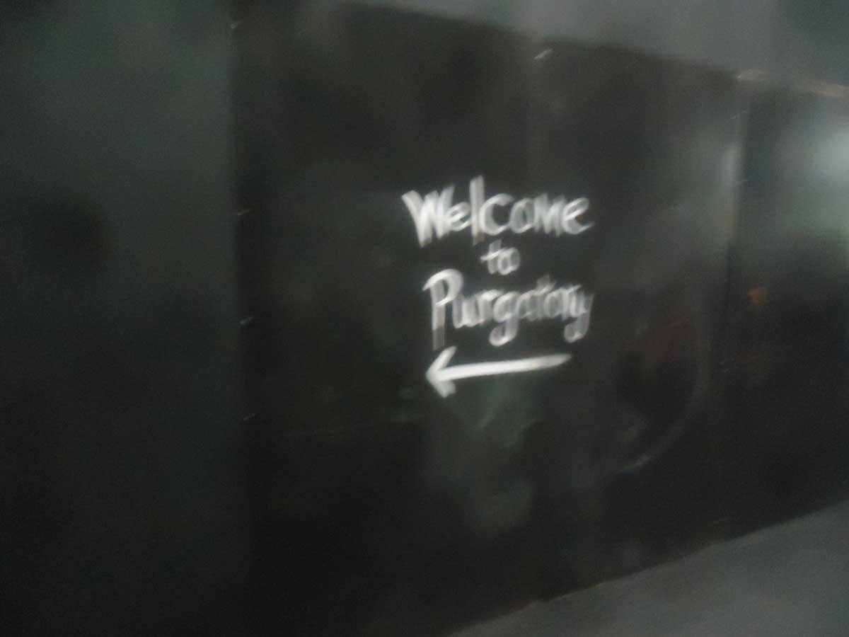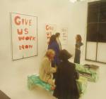 Walk in through the temporary white plastic post-modern, post 90’s big, very big frontage. It does feel big, everything feels big, important, importantly big and polite. Politely big, not show off big, politely big. Get in through the polite security checks, through the press pass check (the woman from the Tattler asks who I am, my answer confuses her, she walks off). Through the security, “put on your pass please sir” A big tunnel-like corridor, a wide tunnel, black walls, nothing oppressive, polite, space to breath, herded politely along a polite tunnel, a polite tunnel for polite people to politely walk down. Black walls, slogans painted on the black walls, what’s that? “Welcome to purgatory”, “It’s no accident that you are here”, hang on, is this a little bit edgy? Welcome to where? This might be a little dangerous? A piss take? Surely not? No, there’s no room for humour at an event like this, surely not? The polite corridor was as edgy as it got, Frieze isn’t about “edgy” or “danger” though, don’t be silly! The woman from the Tattler is here for heaven’s sake! God knows what those slogans were about?