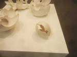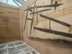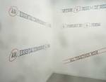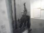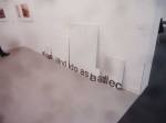 And that delicate Kerstin Bratsch antique glass over there, that glass, hung like banners in a church, that is wonderful, and that almost cute Dave Muller MC5 piece makes me smile and Birgit Brenner’s life size truck made of small strips of brown cardboard (or was It plywood) painted white, the truck is fun. And look at that piece over there, I am actually enjoying this, art does excite me, looking at art excites me, exploring art excites me. True, it all very “nice” and “polite” in here, and it really isn’t the purgatory the black tunnel promised, far from it, far too nice and polite to be purgatory, it isn’t purgatory, I am enjoying it, I think I am? I am aren’t I?. Now if only I could afford a piece of cake and cup of tea, been in here ages now, I could murder a pint.