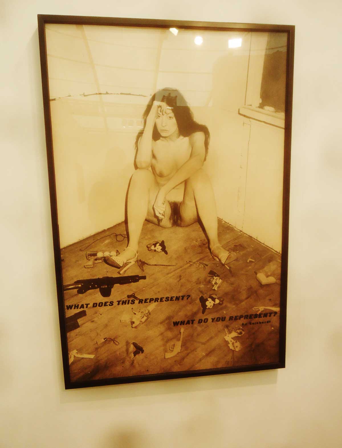 Good to see the Hannah Wilke (R.I.P) piece from 1978, radical feminist punk rock art at the time, surely nothing more than historical now? Good to see is the flesh but I wonder if these gallery people have ever seen any of Agata Cardoso’s very personal almost disturbing work? An Agata Cardoso piece makes me worry about Agata. Guess none of them know she even exists, I don’t imagine any of these people engage in the art to be found in “our” world, and why would they unless someone who does the feeding feeds it to them? And those who do the feeding don’t seem to want to know about it either, Agata would be powerful in here next to this Hannah Wilke piece. There’s a bike frame hanging on the wall over there, but is it as alive as This One here that we had on show on the warehouse wall for the Play show the feeder never would dream of coming to? This One may just be a vandal, then again perhaps he isn’t? Bike frame? Bit polite that bike frame…