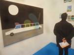 Does a lot of this feel like dangerously close to interior design? Actually Kate MacGarry Gallery’s electric blue carpet does liven up the place. Love that carpet, rather like the Peter McDonald pieces the Kate MacCarry gallery is showing, his paintings set off the carpet rather nicely, like that painting of the big car, sweet, or is it just the colour of her carpet? Whatever it is, Kate doesn’t want to talk about Peter. I like his work, it has a freshness, I don’t want to say innocence, but it almost does have innocence. Surely it wasn’t just the blue carpet? Do like people looking at a gallery full of dummies acting like people in a gallery, the work Tony Friedman, called Cocktail Party, looks like a gallery opening…