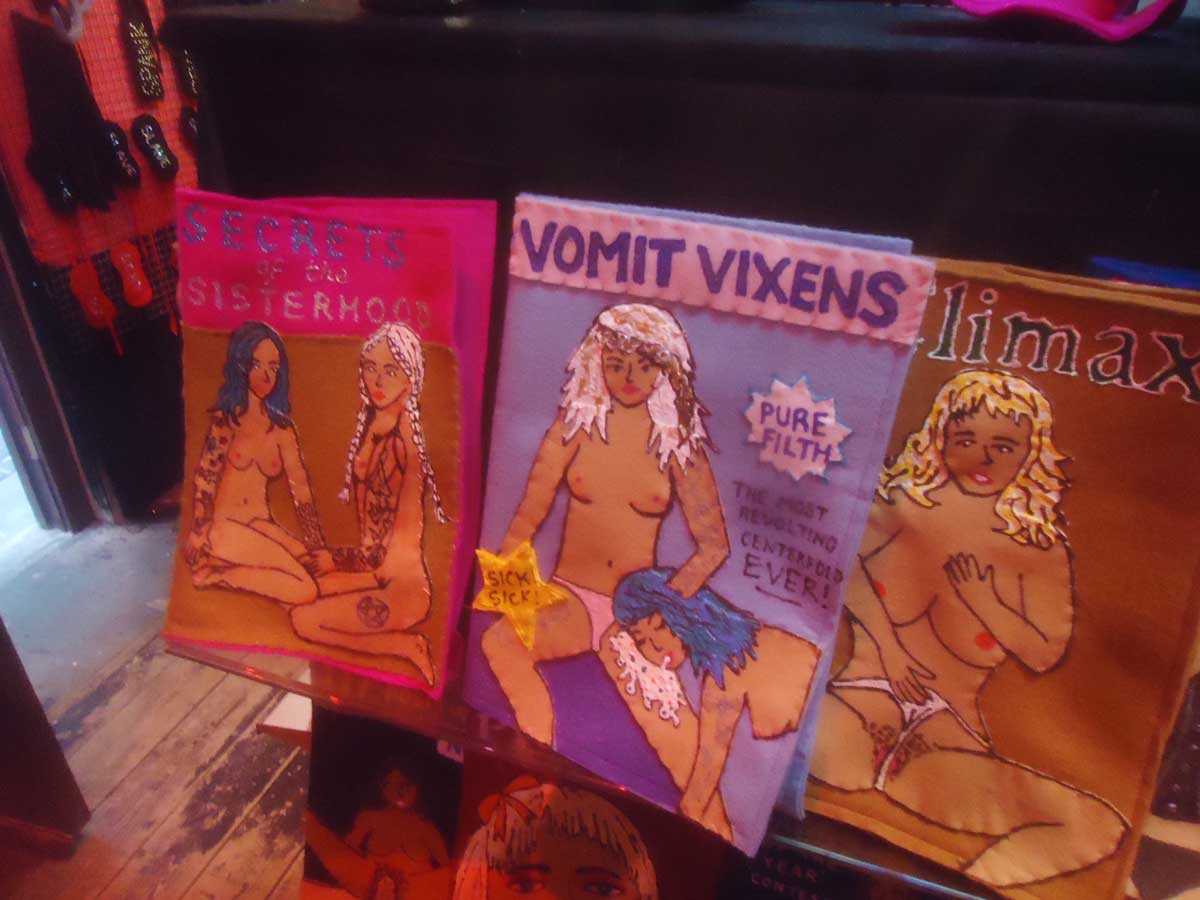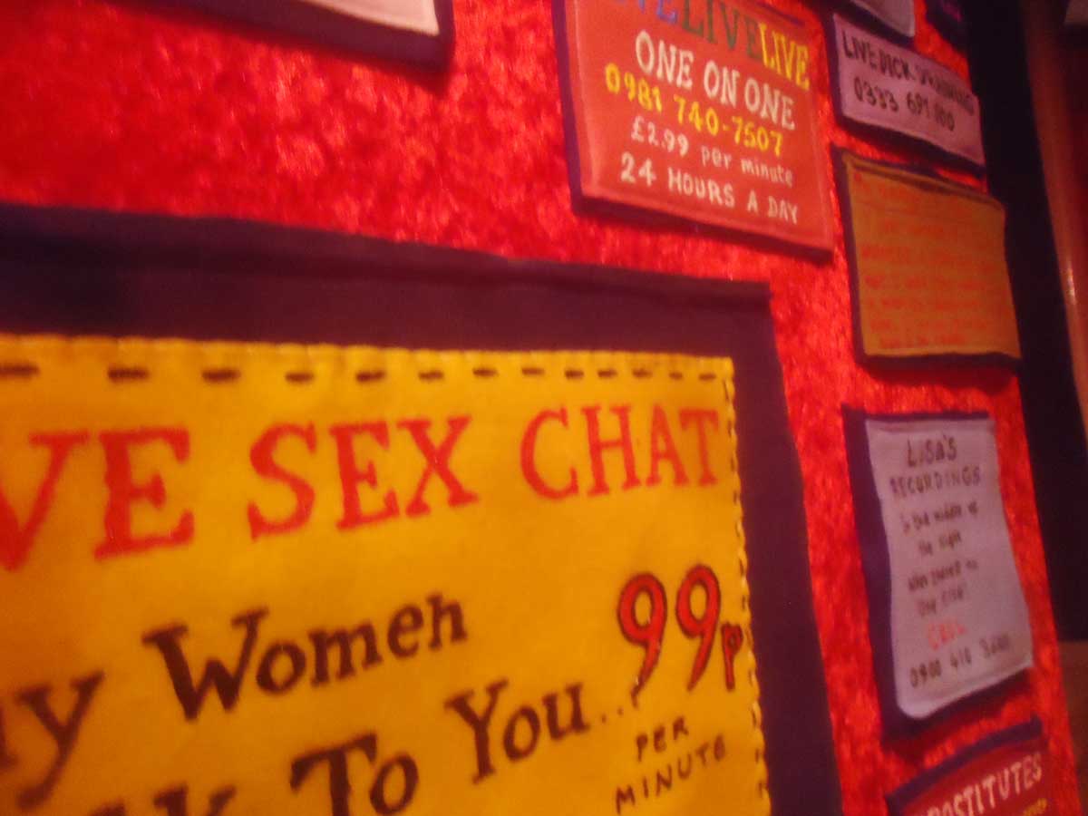 Sparrow has spent the past six months stitching felt porn mags, DVD covers and various sex aids. The show gives the opportunity for those who know little of the sex retail industry to satisfy their curiosity without the need for floor-length trench coats and dark glasses.