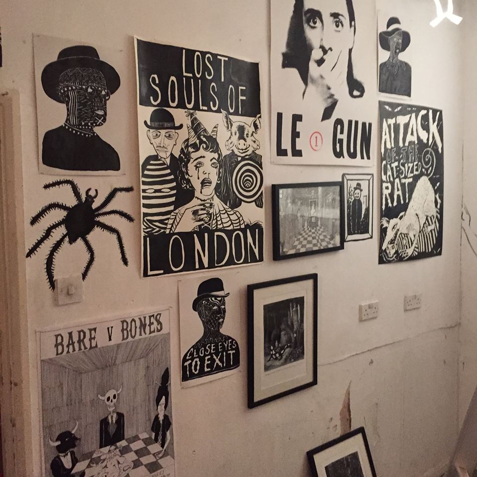 “Established in 2004, art collective LE GUN create idiosyncratic imagery which blends a punk, occult, pop and surrealist aesthetic. As well as being the producers of their cult self-titled magazine, the group is internationally recognised for their enigmatic installations and art shows”.