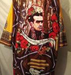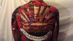 Her world is one of “colour, politics , vibrancy , quirkiness and intrigue”, there are strange crochet anthropomorphic creatures, painted goddess like soft sculptures, life paintings, drawings, puppets , highly charged political feminist paintings, and most of all wearable art, ranging from jewelled textile neck pieces to flamboyant kimonos.
