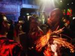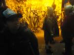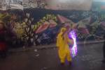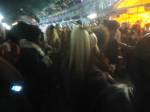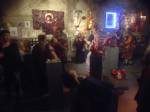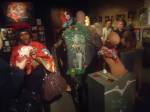 Artist, Feminist, former children’s entertainer and maker of wearable art , Diane Goldie is exhibiting her rather unique world at the Vaults Gallery, Waterloo, SE London , the very busy very bright show opened last night,  Tuesday 3rd of November. The show runs until Sunday 7th. A band, Z-Star, played outside the gallery, in the Leake tunnel, underneath Waterloo station, people danced, people paraded, people painted outside, people talked to each other, tribes gathered, Diane was celebrated, her clothes worn..