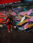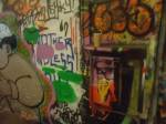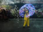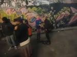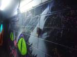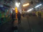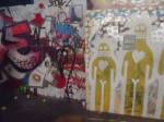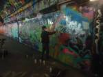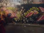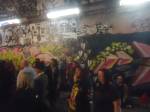 The show is a triumphant riot of colour, of creativity, this is a show that gets on with defiantly doing it . An exciting art show in a glorious underground gallery with lots and lots (and lots) of people doing things. Doing things in a tunnel where others unconnected with the show are painting, dancing, skating, hooping and generally doing their own tribal things, and somehow it all comes together as one whole colourful thing….  a brilliant Tuesday night, a flamboyant opening and a very positive show.  Glorious creativity, her’s is a wonderful world, this was an opening you really needed to be at, still time to go see it though, still time to join in, to quote Ealla Guru, “Diane Goldie really smashed it last night”” .  (SW)