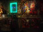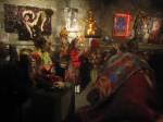 Her world is one of “colour, politics, vibrancy , quirkiness and intrigue”, there are strange crochet anthropomorphic creatures, painted goddess like soft sculptures, life paintings, drawings, puppets , highly charged political feminist paintings, and most of all wearable art, ranging from jeweled textile neck pieces to flamboyant kimonos. Flamboyant is the word, Diane’s world is a flamboyant one. .