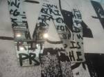5: POP UP FUCK OFF – The last-minute plan was a simple one, the invited artists turn up in the morning, hang some work, get the space ready, clear out some of the rubble, make the place a little more presentable, open the gates for once last time at 3pm, welcome anyone who wants to come explore some art and then….. Nineteen or so rooms, some of them put almost beyond use by the developers already, some of them begging to be painted on, drawn in. Some rooms dark, lights ripped out, demanding film on the walls, some alive with the smell of freshly dug earth, with strange piles of boots and shoes, with bold installations, people creating things, positive statements, activity, spontaneous creativity and for one last day, a building alive and with a defiant heart. Don’t know how many artists turned up, the invites went out around ten days before the show, an almost word of mouth event once more…. more here
