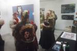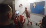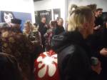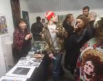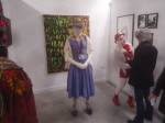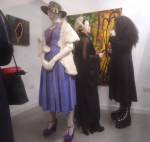 The full list of artists taking part in Reveal reads Amy Elizabeth Kingsmill, Caroline Reed, Cecily Baker, Deborah Griffin, Diane Goldie, Emma Harvey, John Lee Bird, Marnie Scarlet, Megan Pickering, Patrick Morrissey/Hans Hancock, Samuel Brzeski, Sarah Sparkes, Sean Worrall, Skeleton Cardboard and ThisOne – a cross-pollination of so-called Street Artists sharing walls and space with contemporary painters, performers standing (very still) next to textile artists, paintings on reclaimed table tops or computer monitors next to the clean pop art lines of blue canvas… Actually Hebdon Bridge artist Caroline Reed understandably couldn’t make it, her studio got caught up in the boxing day floods up in Yorkshire, a lot of the artists of that fine town lost studios, art, equipment and a whole lot more to the devastating floods, Caroline was represented by a small print of one of her pieces and some words about the flood and the ongoing situation the art community of Hebdon Bridge now faces, we wish them well, there’s some fund raising going on at the moment, more details via Caroline’s social media