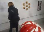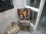Megan Pickering’s piece has people reacting in all kinds of way, really like Megan’s exploring of her culture, her working class heritage, her sexuality, feminism, over the length of exhibition she provokes a whole rage of reaction, as do her zines (and you really do have to listen to the sound of her film). Skeleton Cardboard is an artists in full flow, he use of the seemingly harmless phrases of modern life take on an almost sinister big-brother-like quality, his colour range is refined, his work has developed an edge of its own now, no rubbish dumped here…. best before end…