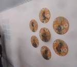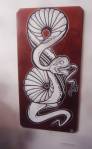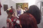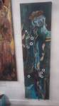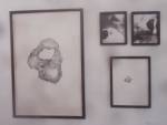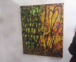 Emma Harvey is revealing a serious understanding of paint now, a particularly painterly style of her own, tonal values, contrast, and most importantly an identity, it isn’t about technique though and certainly not anything as tedious as some notion of photo-realism, this new circular piece revealed tonight is apparently the first of a new series of works, more very personal work that hasn’t been fully revealed with this first piece, we await developments. Deborah Griffin, takes us in to dark corners, (strange depths?), a slight departure from her gothic boldness, where is she going? What is this? What is she revealing? The gallery is constantly busy, a small railway arch in the corner of the Fount Complex, a constant flow, someone left their passport in This One’s house, he draws and paints on anything and everything.