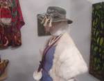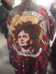 Hackney’s fine Five Point Brewery supplied the beer, always good to have a local independent brewery involved. John Lee Bird has been painting his bold flat (multi-dimensional, far from flat) portraits for some ten years now, there’s already been five rather big Before Encore shows, he’s revealing that the sixth happens sometime this year tonight. Samuel Brzeski’s art take several forms, sometimes very personal and revealing, his room at last year’s Pop Up, F**k Off show over at Tooting Broadway for instance, this time he’s very black and white, almost restrained, no, he’s almost always restrained, understated, until you really look, tonight he reveals some relatively simple, rather intricate black and white pieces that contrast with Diane Goldie’s almost psychedelic textiles (and embroidered canvas) hanging opposite. The Gallery is almost divided in to two rooms, two very white cubes, not often Cultivate can be found in something this white and cube shaped, it feels a little alien. Sarah Sparkes really impressed at last year’s English Magic show at the New Art Projects gallery space (English Magic is soon to re-appear at this month’s London Art Fair), tonight she reveals more of her Material Mediums series an intriguing mix of digital collage and print on classic 70’s vintage wallpaper, images taken from archive photograghs of famous female Mediums from the hey-day of Spirtualism from 1890’s to 1940s apparently..