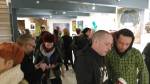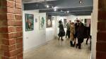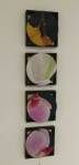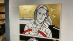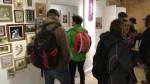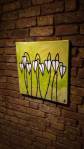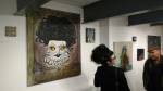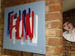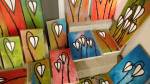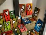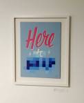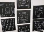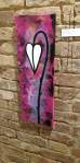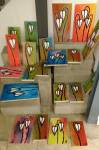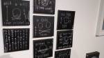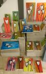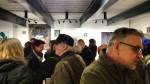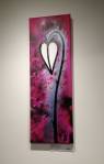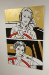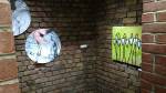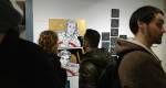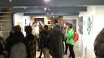 I think it went well, the night was busy, the wine flowed, people flowed, arr flowed, music flowed, paintings fed off each other, complimented each other, spoke to each other. Charlie McFarley was a little more black and white than usual, think he might have caught a few people off-guard with his two new pieces, rather like them. Skeleton Cardboard’s comments of life and “likes” and not being able to breathe without wi-fi were appreciated, Quiet British Accent have taken on a Festival of Britain 1950’s feel with their latest graphic pieces, Emma Harvey revealed a second circle painted and more beautiful moving of paint, Arina Orlova got all Hitchcock with her trademark gold, Nadine Talalla has clearly grown in confidence, a expansive canvas piece and a painter breaking out of her shell now… I think we can afford ourselves a little trumpet blowing in the rain of Dalston, think it went rather well.. (sw) .
