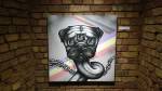 Down the stairs, white walls and bright lights awaiting, seventeen artists and some more cross-pollination, the street art flavours of This One, Charlie Mcfarley and Skeleton Cardboard comfortably sharing walls with the painterly moves of Bruce Lovelock or Joanna Georgiades, the gothic delights of Deborah Griffin, the intriguingly dark and so often beautiful mind-space of photographer and performer Agata Cardoso, actually no, Agata is a painter who uses a camera rather than a brush.