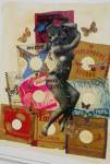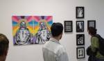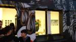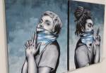 The pieces that really do jump off the wall here at this rather busy Convergence opening are the Wildcat Will collage and varnish pieces, well no, they don’t jump so much as ease their way over and ask you to f**k art and instead dance, his 1920’s butterfly flappers revolving at 78rpm, beguiling, flirting, Wildcat’s art is flirting with us, at time zero f’s have been given, but this his 20’s flappers seemingly really do give a flip as they steal the rather fine show is such a stylish way…. (sw) .
