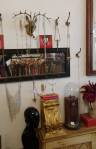 We’ve been wanting to get in here and do something for ages, Emma Harvey and myself that is, Harvey and Worrall at Wall and Jones is on this weekend, two (mostly) painters, two artisrs, Emma Harvey and Sean Worrall in there with all the treasure for a weekend, in there with the work of the in-house designers, in there in the space, artwork spread over the two floors. There’s four in house designers right now, brilliantly creative dressmaker Ali Jones (she uses her found fabric so gloriously well), and exquisite jewelry makers Halo Jones, Odette and Rosita Bonita (the three of them, indeed the tour of them, compliment each other, as well as the space so deliciously well), the four of them in a brilliant “old tailor’s shop that has been transformed into a cabinet of curiosities, housing the two designers’ latest collections in an aesthetic of Victorian tatter”.