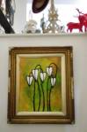 The show was to happen over a weekend, a Friday opening followed by a Saturday and a Sunday, a collection of recent artworks, mostly paintings, some needlework, from the two of us, artworks hidden over the two floors in the cabinet of curiosities that is so so alive already. Harvey’s circles, be them paintings, old 78 records in freshly painted sleeves, red-stitch embroidery, my thorns and leaves and recent layers of growth. We’re half way through the weekend right now and loving the reactions of people coming in for the first time and exploring the space, coming in and finding all kinds of treasure (and some of the art). The exhibition ends at 6pm on Sunday, May 29th, do let curiosity allow you in should you be passing, curiosity never did kill the cat and the three designers in here are creating some very beautiful things… (sw)