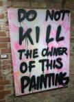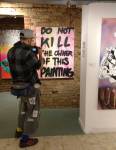 Big pieces, the culture of now, tongue-in-cheek? The glossy generation? Something’s gone wrong, a garish slice of right here right now. Class War? No class? Black eyes, America’s Got Talent? Chicks With Guns? Nick Flatt’s work is just a little too realist in more ways than one, that isn’t a criticism of his work, more the world it comes from, the world it reflects, social comment indeed, plugging in to the zeitgeist with a can of dayglo pink paint. I don’t like this art, but then I suspect that is a big big part of the point, this is strong comment, repulsed indeed, strong statement, a challenge rather than just another pretty piece of street art technique and another semi-slick graphic designer “smashing it” and selling you the limited edition print of that thing they “smashed”. This is repulsively good, I like this, I mean no, really really don’t like it, I rather like that I don’t like it, strong show, strong statement, powerfully repulsive pieces, excellent pieces, really like them, enhanced by the “vandalism” of the “advertising” by graff writer Punk One – good to see that slightly messy not-too-perfect style hasn’t been slicked up too much for the gallery wall, he brings the energy to a show that takes a few much needed risks, a street art show that actually has something to say and says it rather well. Repulsively good, consumer-society, rather like it, the art I mean, not the consumer-society and the advertising onslaught and that repulsive stuff…. (SW)