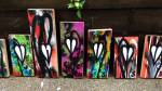 The 43 pieces we’re all painted, a thorny piece of fresh growth on each one, a message on a sticker on the back, a hash tag and request for finders to post photos, a selfie with their find or a just a photo of the piece on their wall, post up those photos and use the hashtag, no so on the end, it is one piece called #43ArtDrop, post the images on social media for us to find.