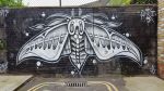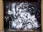 This One is a Yorkshire man slowly painting his way through every wall in London, well rather rapidly actually, This One is a prolific street artist who’s tattoo-flavoured illustrative style kind of stands out on cluttered the walls he’s adding to. Unlike a lot of the current crop of London’s street artists This One‘s standout black and white style translates rather well to canvas on a gallery wall, his paintings on canvas or on doors, or boats or bike frames look as fine inside a gallery as they do fighting through the clutter, the advertising and he estate agents boards on the the East London Streets.