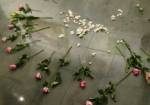 and then we found out…as she plucked a fresh petal from the last white rose and using a needle pinned it to her face. Deathly silence overcame us, no-one dared move or say a word, we were all transfixed. As her face become slowly covered in pinned white petals, blood starting to creep down her face creating bright, flowing marks down her satin cream dress, she continued on. Each petal considered, each placed and pinned so carefully on her face, each one felt, each one adding more, and more, and more. The slow controlled movements became harder to accept, the blood flowing from a few, as her face became covered in petals. Beauty is in the eye of the beholder. Until her face was full of pinned petals, white and red, complete. And just as carefully and considered, one by one, each petal and pin taken out, laid down, dropped onto the floor. The fresh white petals stained with red blood laid on the floor, used. Every petal and pin taken out created a new flow of blood down her face. The release. We were remained transfixed in silence as we watched each one coming out, until finally they were all gone. She was free of petals with blood covering her face and dress. She stared at us and slowly, gracefully walked away, and yet still no-one could speak.