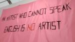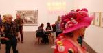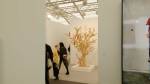 New York’s P.P.O.W gallery politely excites, There’s some strong charcoal plant drawings (more charcoal) and that collection of pink from Portia Munson can’t fail to excite – looks like she’s turned most of Instagram pink this morning. The Juan Araujo pieces over in the Stephen Friedman Gallery cube excite, Donna Huanca does as well, Galeria Luisa Strina has some stand out pieces, the Raymond Hains 1971 torn poster piece Galerie Max Hetzier (Paris) are showing excites, the totem pole with the table football game in the middle of it – from ShanghArt gallery (Shanghai) – that kind of excites, that broken bell over there, that red painting on that wall – hey look, lots to see, lots to explore, some of it really exciting, although mostly politely so. Off for another look today, we’ll be back here with more words, some proper reactions, some names and those all important links – not that any of these galleries give a flying flip about any of what we have to say. Some of their art does excite, most of it politely so, I get the impression they couldn’t care less what anyone outside of their price range thinks of any of it…. Part two coming up later, a closer look at the best of it and some names and well…. Friday morning, I’m off for some more once I;ve done a bit of work here, art excites. (sw)